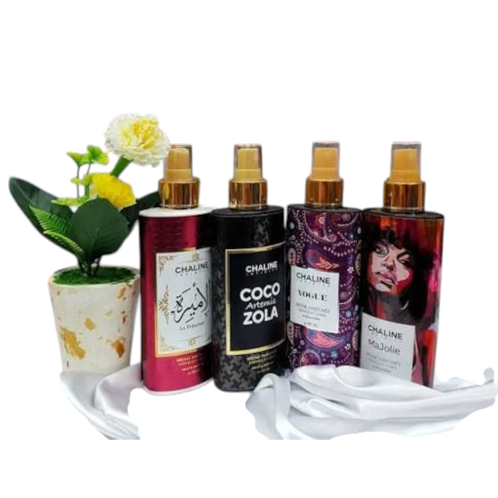La Brume Chaline 180ml عبارة عن مجموعة من البخاخات المعطرة المصممة للجسم والشعر، وتوفر بديلاً أخف ومنعشًا للعطور التقليدية.