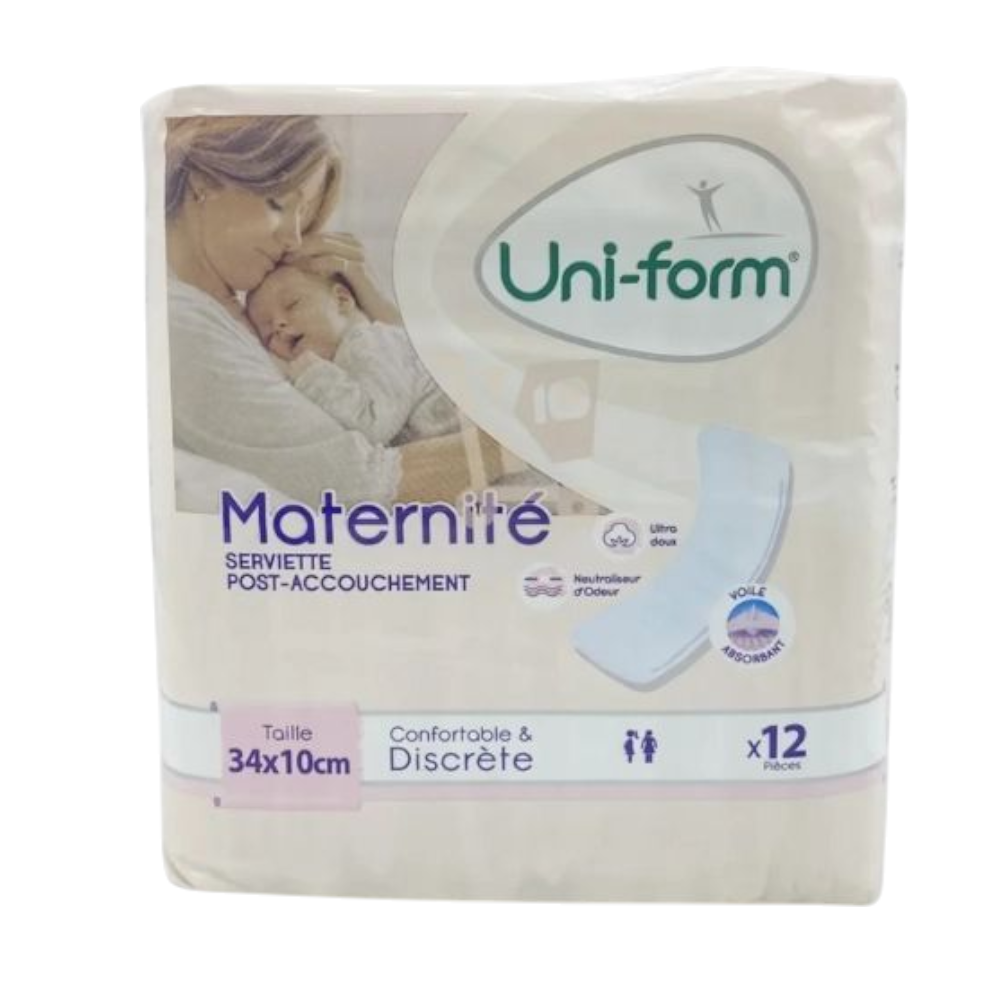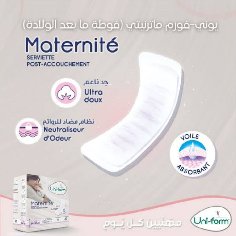 COUCHE DROITE PLIEE POST-ACCOUCHEMENT UNI-FORM” هي وسادة Uni-Form Maternity بعد الولادة