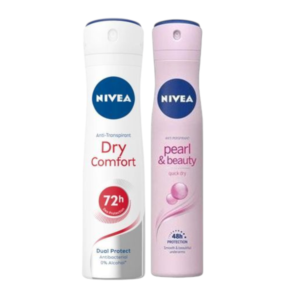 بخاخ نيفيا الأصلي المضاد للشفافية باللونين الأبيض والأسود: تم تصميم مزيل العرق هذا لحماية الملابس من البقع البيضاء على الأقمشة السوداء والبقع الصفراء على الأقمشة البيضاء. إنه يوفر حماية موثوقة من الرطوبة لمدة 48 ساعة (أو 72 ساعة في بعض التركيبات الجديدة) وهو خالي من الكحول. وهو موجود في إصدارات للرجال والنساء.