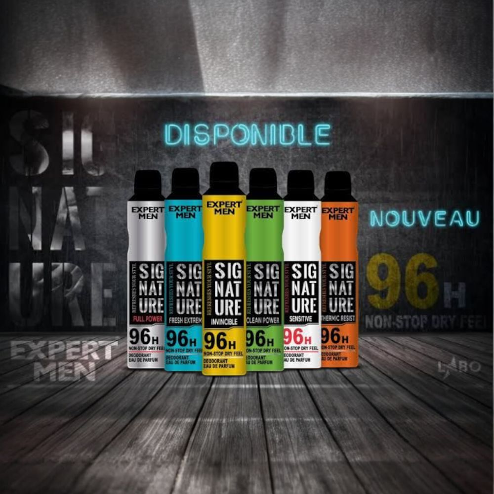 مزيل العرق Signature White/Black/Silver: تقدم Signature، كعلامة تجارية، عدة أنواع من مزيلات العرق بالرش سعة 200 مل للرجال والنساء، مثل “Signature White” و”Signature Black” و”Signature Silver” و”Signature Cocktail”.