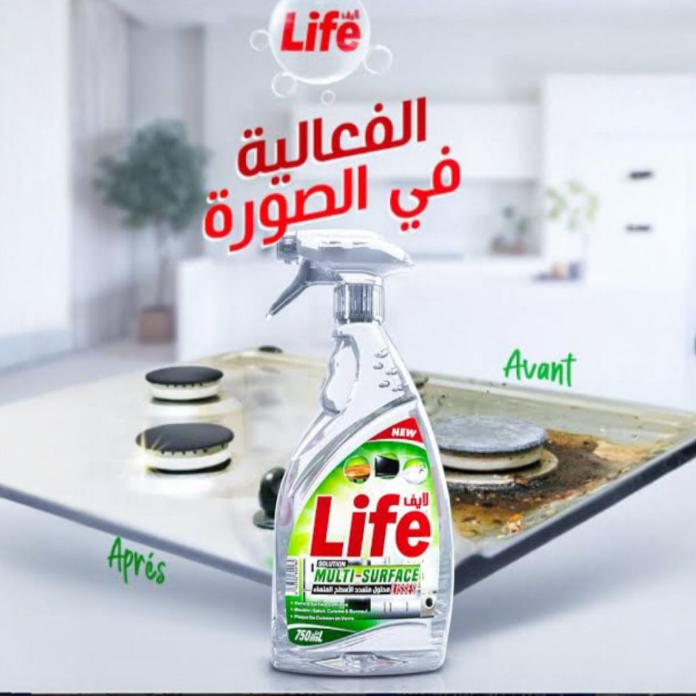 LIFE Multi-Surface 750ml هو محلول تنظيف متعدد الاستخدامات تم تصنيعه في الجزائر، ويستخدم بشكل أساسي للصيانة اليومية لأنواع مختلفة من الأسطح المنزلية والمهنية.