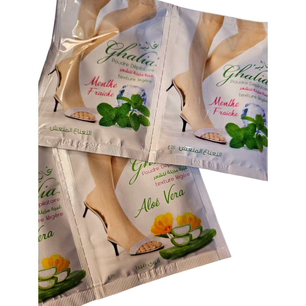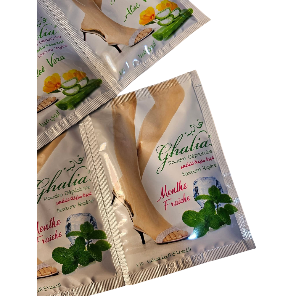 مسحوق الغالية معروف بشكل أساسي كمنتج تجميلي لإزالة الشعر (لإزالة الشعر). يتم تقديره لتأثيره السريع وغير المؤلم على مناطق مختلفة من الجسم.