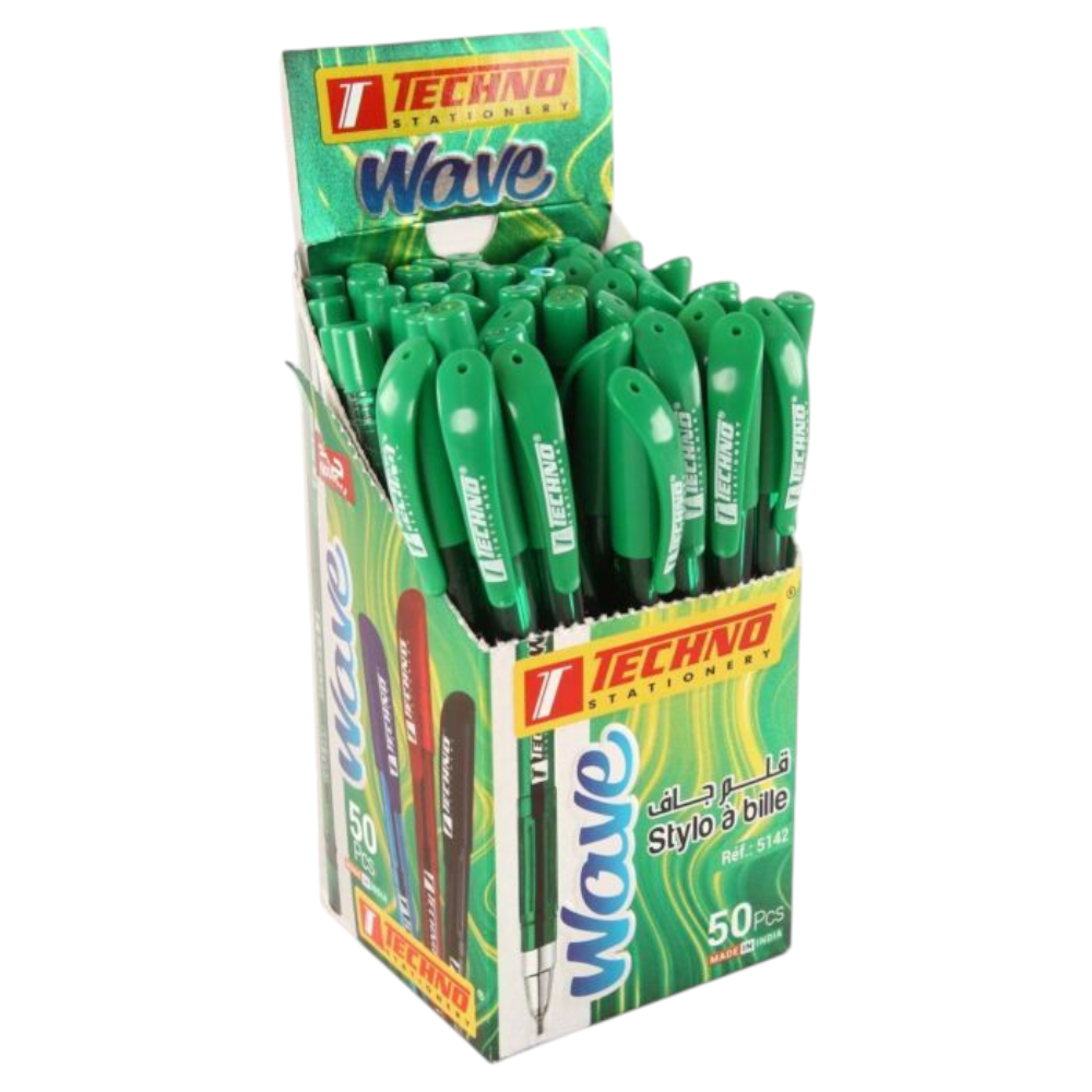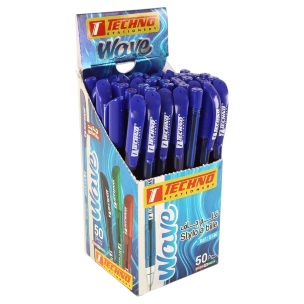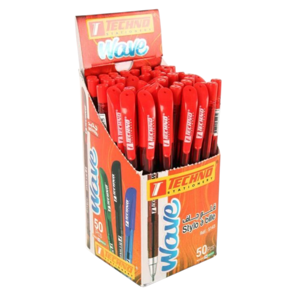 قلم الحبر الجاف Wave 1.0 mm “Techno” هو أداة كتابة بسيطة واقتصادية، معروفة بكتابتها السلسة والسريعة بفضل حبرها اللزج. وهو متوفر بعدة ألوان حبر، بما في ذلك الأزرق والأسود والأحمر والأخضر.